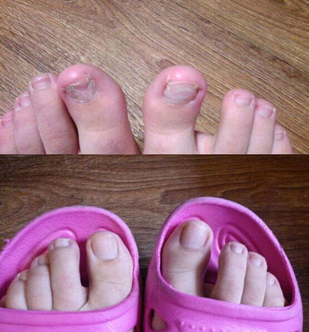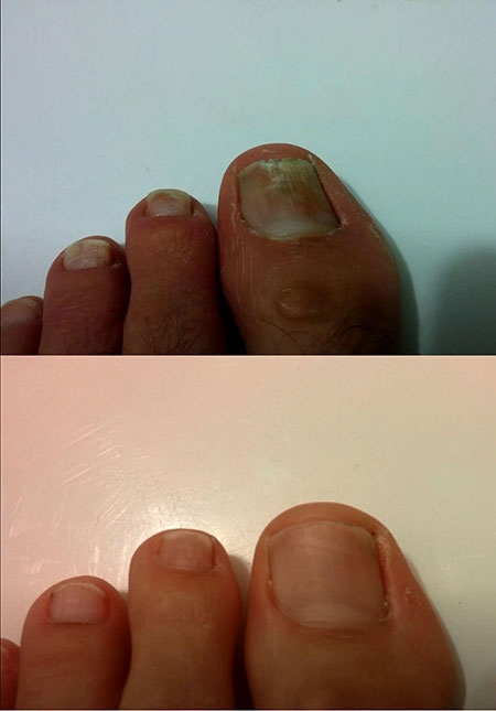 2. Onihomikoza (atletsko stopalo) jedna je od najčešćih mikoza. Gdje god ljudi idu bosi, tu vreba opasnost od zaraze. Spore gljivica mogu podnijeti i visoke (do 100 ° C) i niske (do minus 50-60 ° C) temperature i mogu ostati aktivne mjesecima. Budući da je pacijent prekasno potražio pomoć, bila je potrebna amputacija.